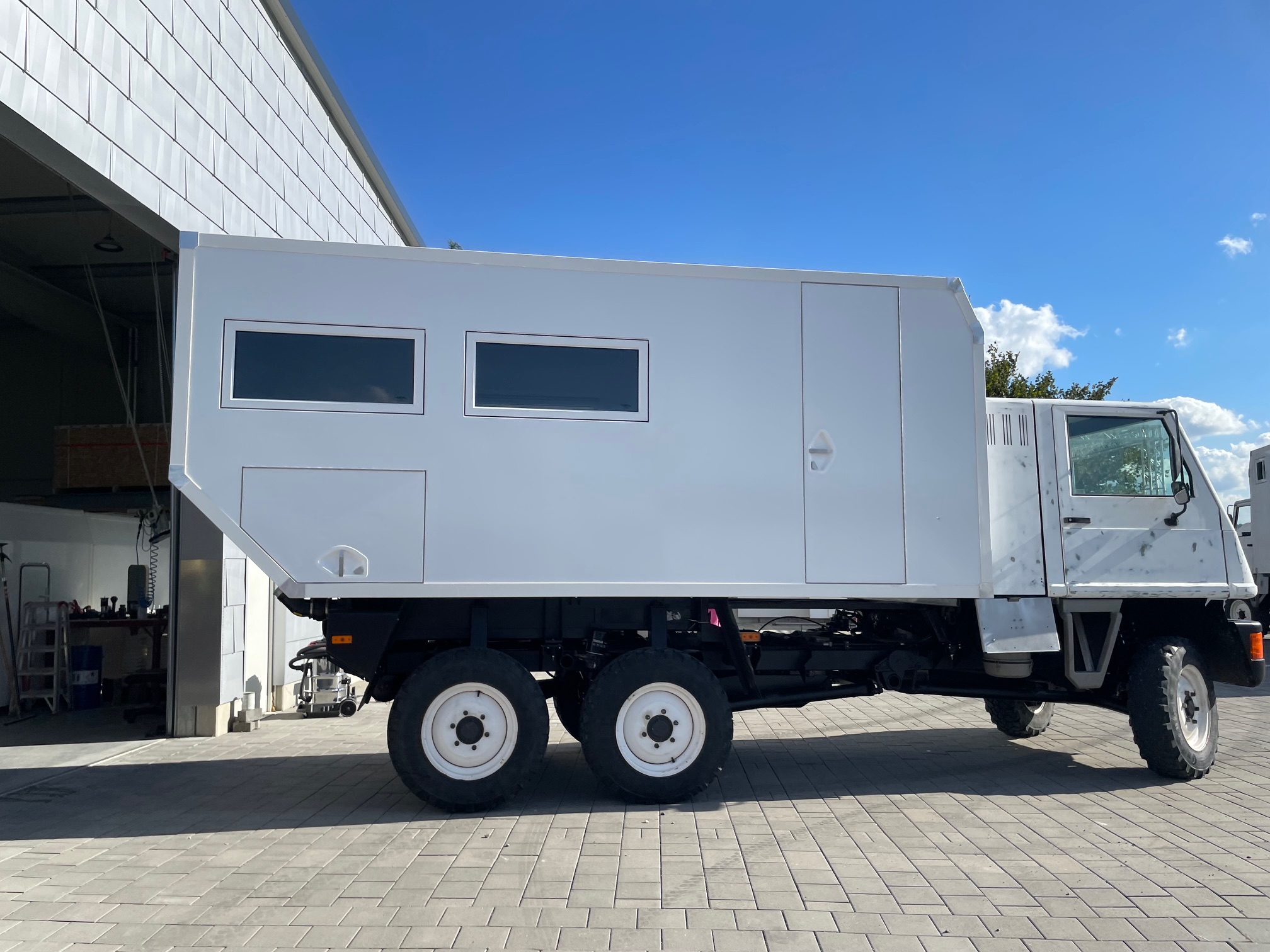 Momentan arbeiten wir an einem Bucher Duro 6×6 mit isolierter Kabine, 580 Ah LiFePO₄-System, Victron-Elektroplanung und maßgeschneidertem Innenausbau mit Echtholz-und Schichtstoff Oberflächen und Alcantara-Details.